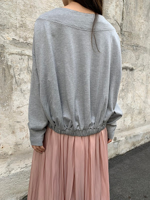 後ろ身頃の裾にあしらったギャザーで女性らしいシルエットを形成。